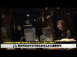 Overview: 【テーマ】この企画は終電終わりに居酒屋に行き、まだまだ飲んでいる女の子に声をかけ女の子の悩みや人間模様を聞き、最後はしれっとお持ち帰りを目指す企画。●本日の飲んだくれさん⇒まやちゃん(21歳)、飲み友⇒ちあきちゃん(22歳)。①今回はオフィス街と歓楽街の二面性を持つ大人の街、五反田駅周辺に出没!1軒目のお店で出会えたノリのいい女の子たちにまさかの撃沈。2軒目のお店でスケスケ黒レースのお洋服を着たおにゃのこを発見!お会計を払ってあげると伝えたら二つ返事で取材OKを頂きました♪②耳かきエステで働いているというまやちゃん。なんだか若干いかがわしい香りが…。他にも相方のちあきちゃんと一緒にコンパニオン的なお仕事もしているとのこと。そして稼いだお金で二人でホストに通っているという…。この年齢でなかなか破天荒な人生を歩んじゃってるけど大丈夫なの…??③恋バナで盛り上げることができたので、その勢いがなくならないうちに2件目へ移動!ここからは徐々に下ネタを放り込んでいきますよ!性格的にもお仕事的にも男性経験はかなり多いようで「3桁はいってるかも…」と驚愕の一言!すっかりお酒もまわり始めた彼女たち。口から飛び出すのはライトな下ネタからゲスい内容ばかりに様変わり!でも結局こういう話が一番盛り上がるんですよねぇ(笑)④さぁここでダメ押しのもう一軒!というところでちあきちゃんは「ホストとアフターがあるから♪」というこれまた破天荒な理由でお別れ。タクシーで颯爽と夜の街へ消えていきました。かなりいい時間になりお店も閉まってきてしまった…。ということでホテル飲みすることに!飲んでる途中でトイレに移動したまやちゃん。なかなか出てこないなぁ…と心配してたらトイレの中でオナニーしてました!(笑)「なんか襲ってこないからムラムラして…」とはにかむ彼女!申し訳ねぇ!でもタイミングを見計らってたんですぅ!!分かりやす過ぎるOKサインを頂いたのでそのままトイレでセックス!窓際まで移動してから夜景をバックに手マン&潮吹き!セックス大好きなまやちゃんの性欲は留まることを知らず、オマ〇コは常時ヌレヌレ状態!乱れる彼女のおかげでバッキバキに育ったオチ〇ポをぶち込み、朝までがっつりセックスを楽しみました♪★飲んだくれ結果⇒ホテルに連れ込んだらタイミングが大事!モタモタしてると勝手にオナニーで満足されちゃうぞ!