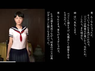 Overview: A story about two sisters who are turned into sex slaves by a rural old man. Ida Yoshiaki,a man who has been promiscuous with women since he was young and used his family's power to become the village chief,now has his eye on a pair of adorable sisters who have moved from Tokyo. "Participate in the village's secret ritual." He summons the girls to his house,strips them naked in his usual way,and makes them suck his filthy cock before violently taking their virginity. "Ahhh! My stomach... take it... it hurts... ngh!"