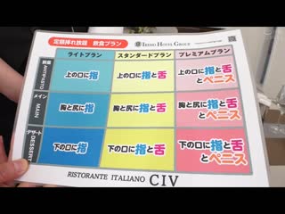 簡介: 美味的義大利餐廳,被評為可以品嚐到美味的義大利料理的名店。這樣的人氣店,開始了每月固定收費的服務!美味的料理,還有店內的美味女性員工和女性顧客,誰都可以盡情享用!除了芳香的酒之外,還可以盡情品嚐淫蕩的汁液!廚房工作的女性廚師也是目標之一!極致的美食和酒,以及高貴的女性。可以體驗到如同王族般的最贊用餐時間!如果體驗過這樣的用餐方式,就不會再去普通的餐廳了!