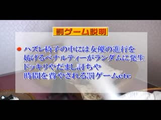 簡介: 在限制的時間內從一大堆椅子中找到黃金座椅!找到的話賞金竟然有100萬元!非常團結的女孩們這次要互相競爭!不過做到錯誤的椅子不僅有水,粉末,臉盆等陷阱,還有強制高潮的猛摳!女孩們究竟有沒有辦法順利獲得獎金呢?